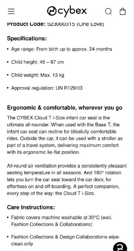 *Также есть в наличии специальная база для этого кресла, которая позволяет его безопасно установить в машине, а также поворачивать на 180 градусов для удобного вынимания малыша из машины.