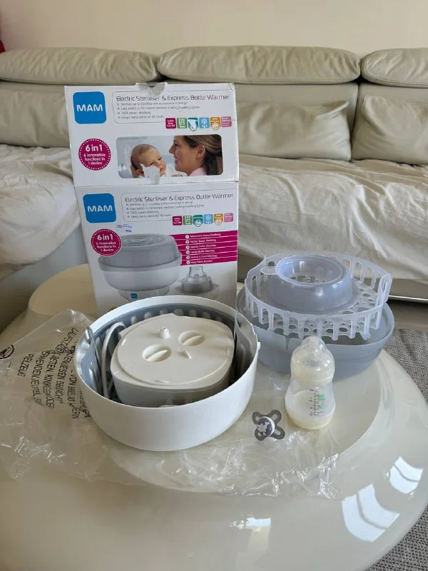Стерилизатор + подогреватель для бутылочек. Можно использовать так же в микроволновке. Поддерживает температуру бутылочки, если это необходимо.