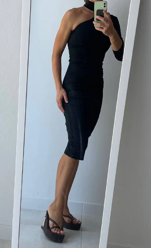 7€ Новое черное коктейльное платье, размер S/XS (не подошло), полиэстр и эластан (материал тянется), длина 103,5 см, рукав 58 см, окружность талии 64 см, на уровне подмышек 37 см, горло диаметр 31 см .📍 Лимасол, возможно недалеко от Columbia Pier/Columbia Beach/Amara/Miramare Hotel/Makariu Roundabout