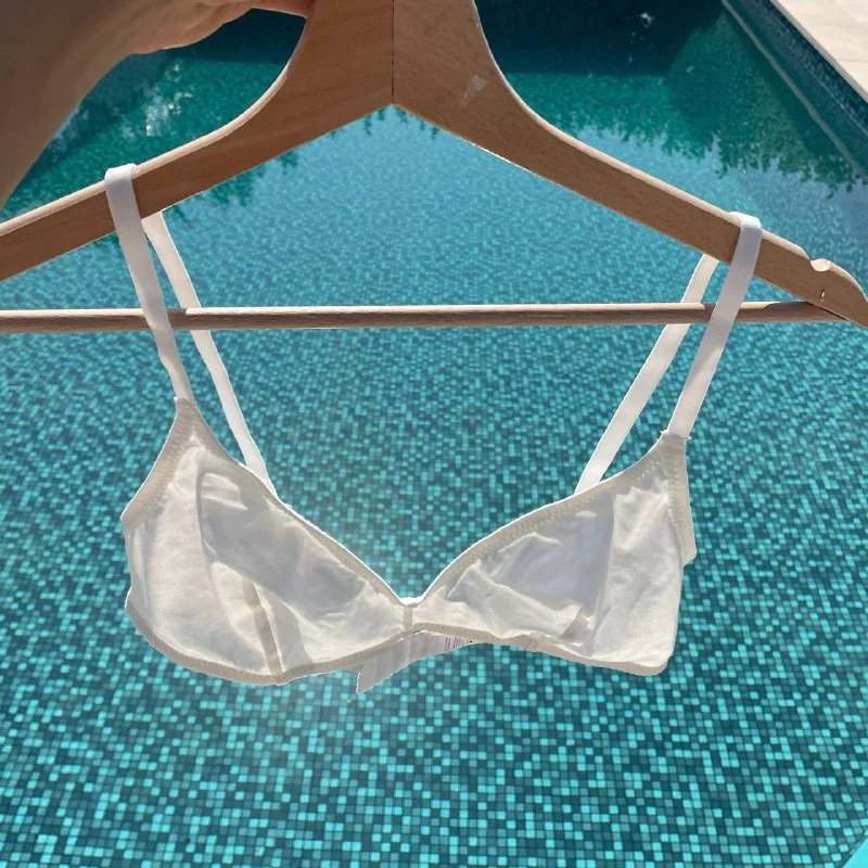 3€/ 1 шт. Два новых белых бюстгальтера, хб, размер S (1-2 размер), без косточек и чашечек (не подошли).