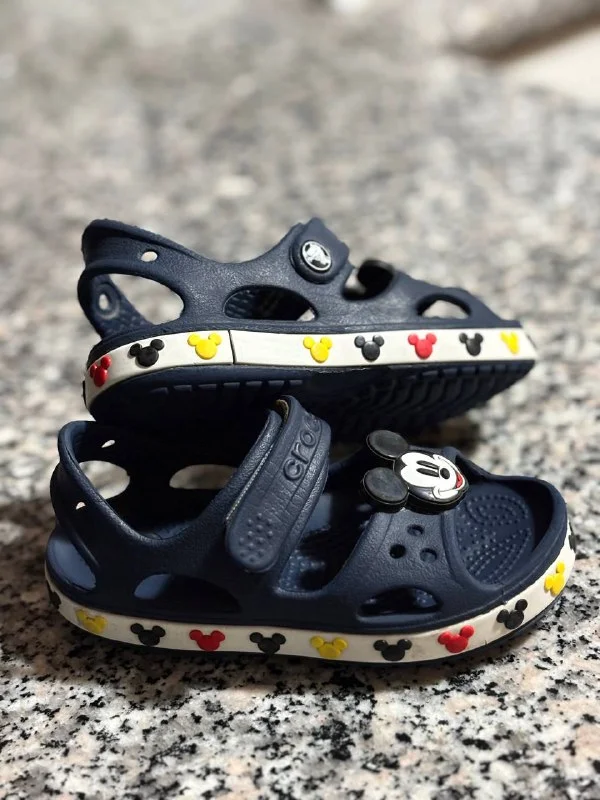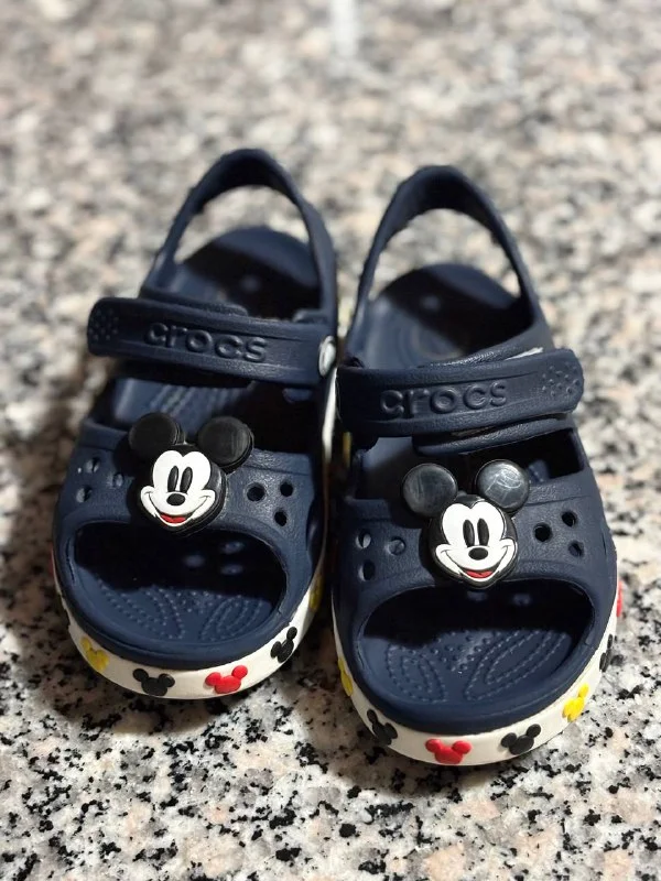 Детские Crocs. C9. В дырочки можно вставлять джибитсы, но мы не пробовали. На мой взгляд чуть маломерят и это скорее размер 23-24, но 24-25 тоже нормально. Лимассол. 10€