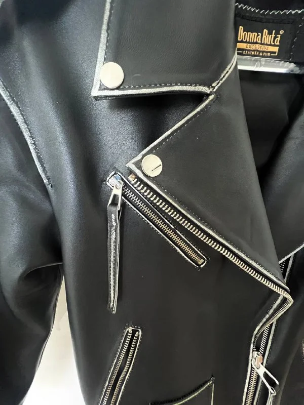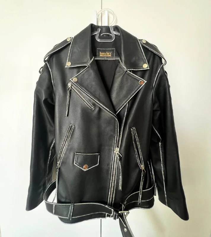 Эксклюзивная винтажная кожаная куртка оверсайз из итальянской кожи Lambskin Black S М размер длина 65 см 450€