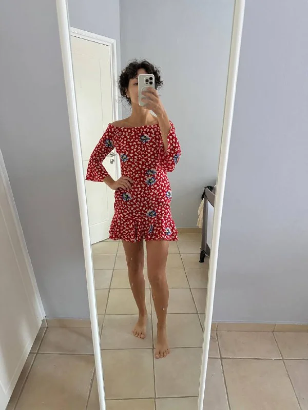 Платье макси с открытыми плечами.