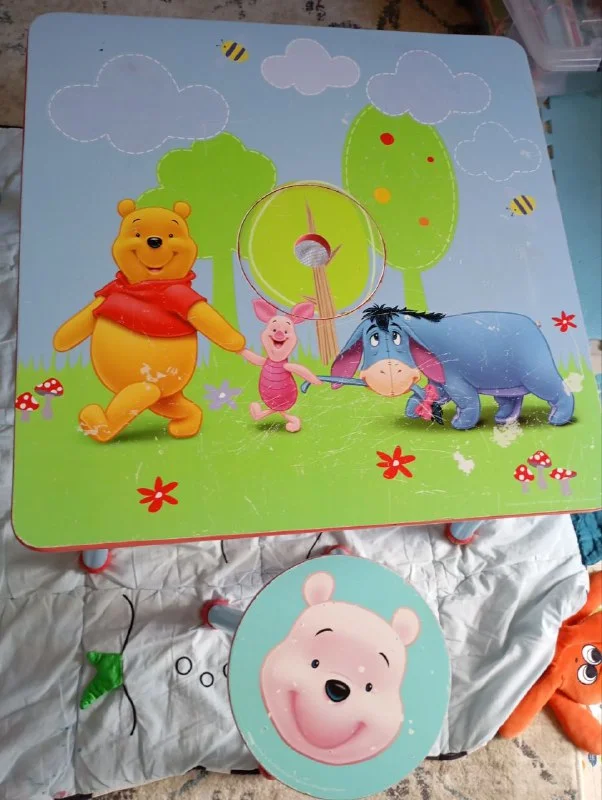 Столик со табуреточкой. Устойчивый и удобный. Со следами эксплуатации, но на функционал не влияет. По центру стола потайной мешочек. 15 евро. Ларнака