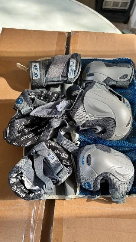 For sale: Salomon protective gear set including knee pads, elbow pads, and wrist guards. Size Small (suitable for women and teenagers). Made of 100% synthetic materials for comfort, lightweight, and protection. All items are in excellent condition and come with the original carrying pouch.