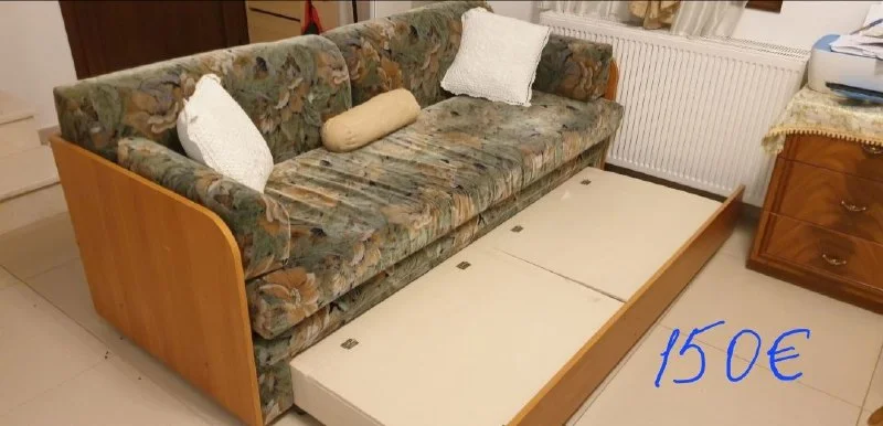 Продам диван в хорошем состоянии, очень удобный, легко раскладывается в удобную кровать, два больших ящика, ткань не вытерается, Италия - 120 евро