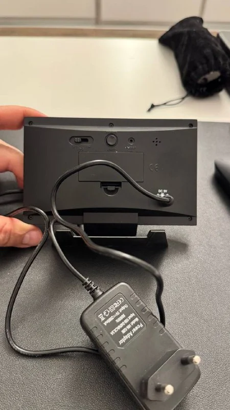 For sale: Digital desktop thermometer with clock in excellent condition. Displays current temperature, humidity, time, and day of the week. Perfect for home or office use. Operates on power (adapter included). Simple and user-friendly interface.