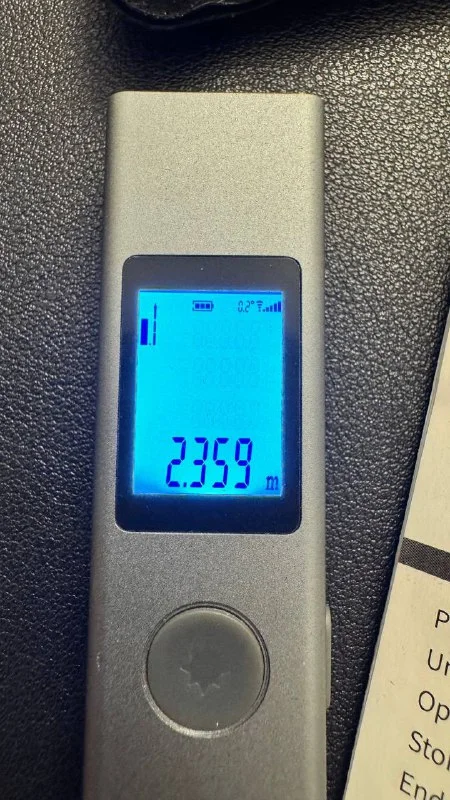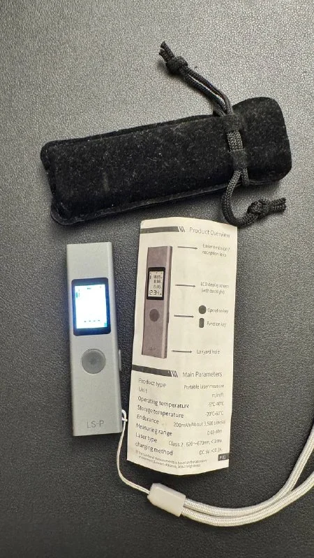 Selling a compact laser distance meter in excellent condition! This device is perfect for precise distance measurements up to 40 meters. Its small size and built-in battery make it convenient for any environment. Comes with an original case and manual.