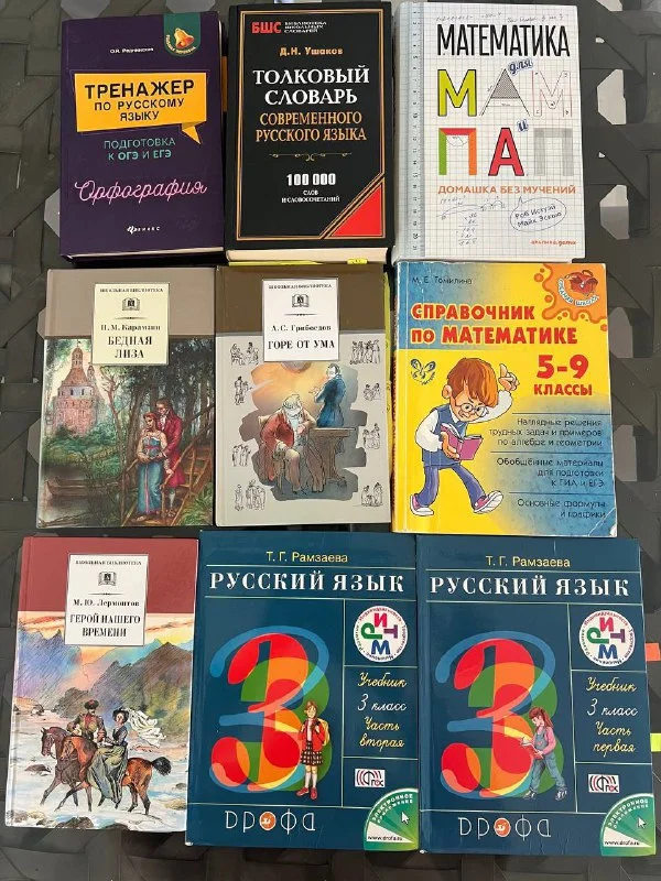 Есть учебники по русскому, греческому, английскому.