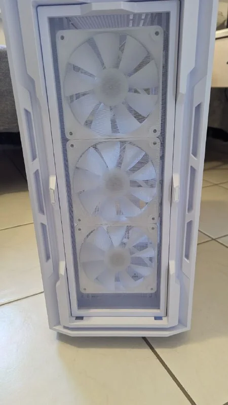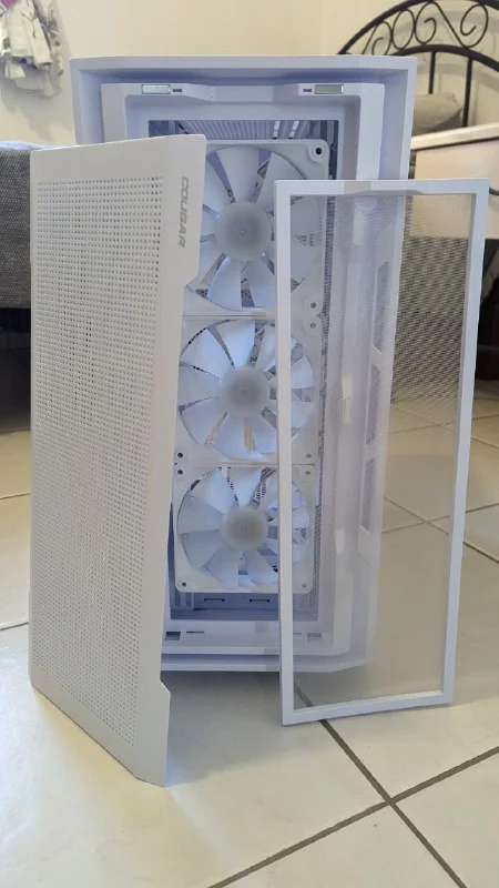 Корпус Cougar UNIFACE RGB white. Полностью комплектный корпус под вашу сборку. Встроенные 4 кулера 120 мм с ARBG. Хаб для подключения ARGB подствеки и кулеров. Так же 2 нейлоновых пылевых фильтра. 1 на фронт панель и 1 на БП. Подходит для установки видеокарты до 400 мм. На верх становится вода 360. На боковую панель можно поставить воду на 240. Так же можно перевернуть панель крепления видеокарты под вертикальную установку. Райзер в комплект не входит. 80€. Пафос.