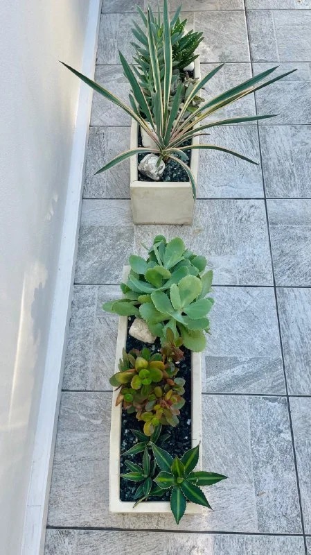 26€/1шт (с черной розой - 30€) Четыре прямоугольных бежевых горшка суккулентово-кактусовые миниклубмы: высота горшков 18 см, ширина 20 см, длина двух 65 см, другие два по 55 см. Варианты оплаты: револют или ровно наличными Лимасол, Pyrgos