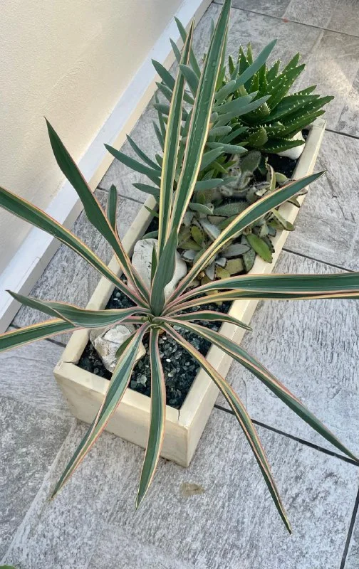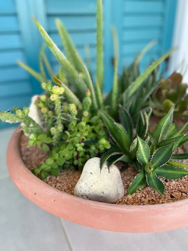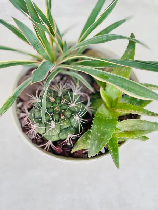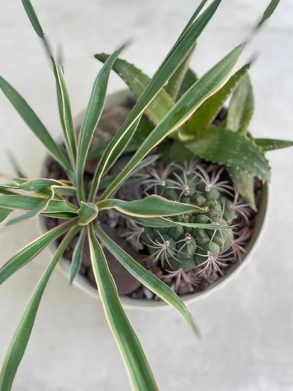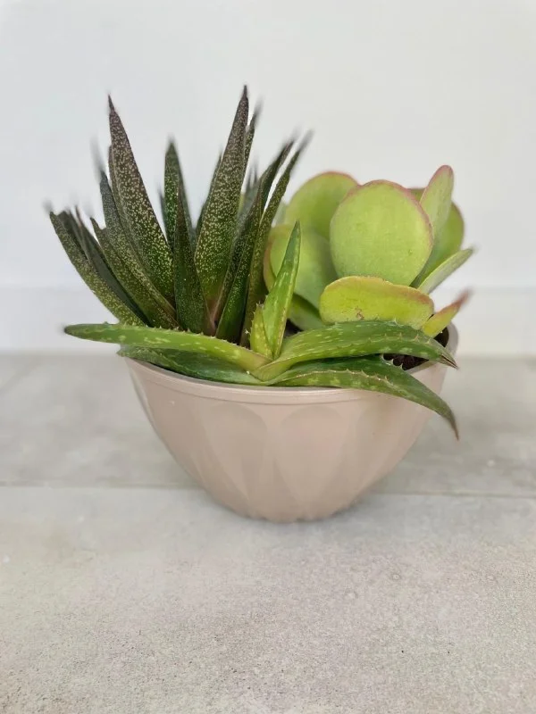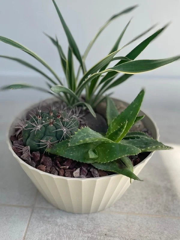 18€ Суккулентово-кактусовая миниклумба в пластиковом бежевом горшке: высота горшка 13 см, диаметр 24 см, самое высокое растение 27 см. Растения: агава, кактус гимнокалициум и пятнистое алоэ (Aloe maculata). // домашние растения // уличные растения // суккуленты Лимасол, возможно, по договоренности, недалеко от Columbia Pier/ Columbia Beach & Lidl / Amara Hotel /MiramareHotel & Icon/Makariou Roundabout / Jumbo Linopetra / AlphaMega Linopetra / La Isla