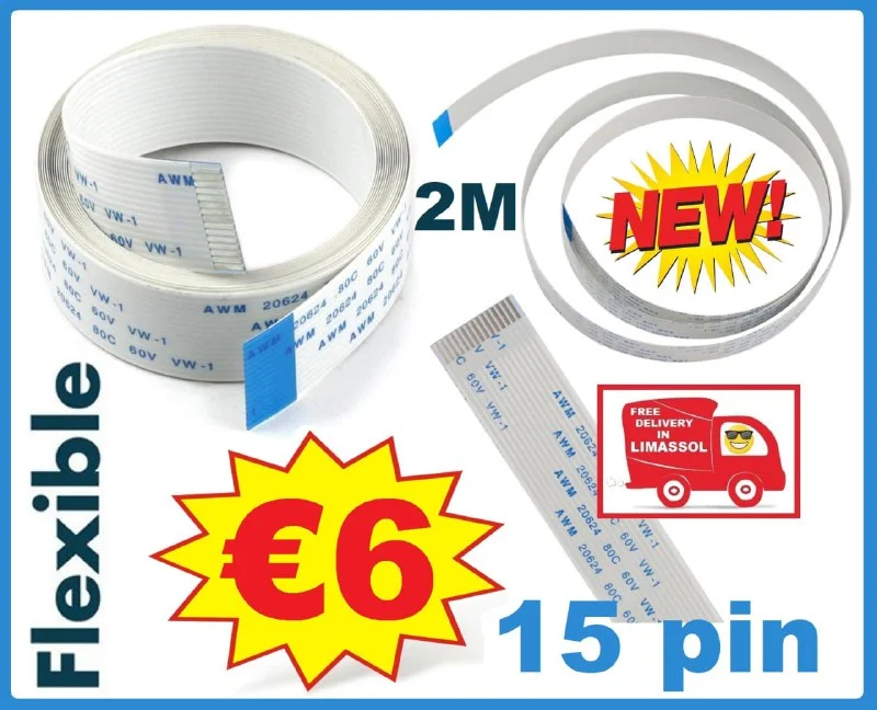 15-контактный ленточный гибкий кабель CSI для модуля камеры "Raspberry pi" 📹 и для других гаджетов💻 Длинна 2 метра📏. Цена:€6. Бесплатная доставка по Лимасолу🚙