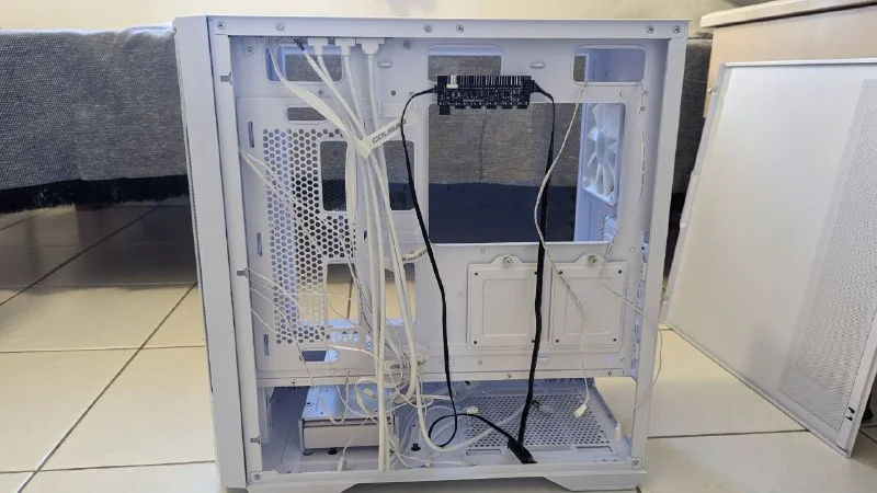 Корпус Cougar UNIFACE RGB white. Полностью комплектный корпус под вашу сборку. Встроенные 4 кулера 120 мм с ARBG. Хаб для подключения ARGB подствеки и кулеров. Так же 2 нейлоновых пылевых фильтра. 1 на фронт панель и 1 на БП. Подходит для установки видеокарты до 400 мм. На верх становится вода 360. На боковую панель можно поставить воду на 240. Так же можно перевернуть панель крепления видеокарты под вертикальную установку. Райзер в комплект не входит. 70€. Пафос.