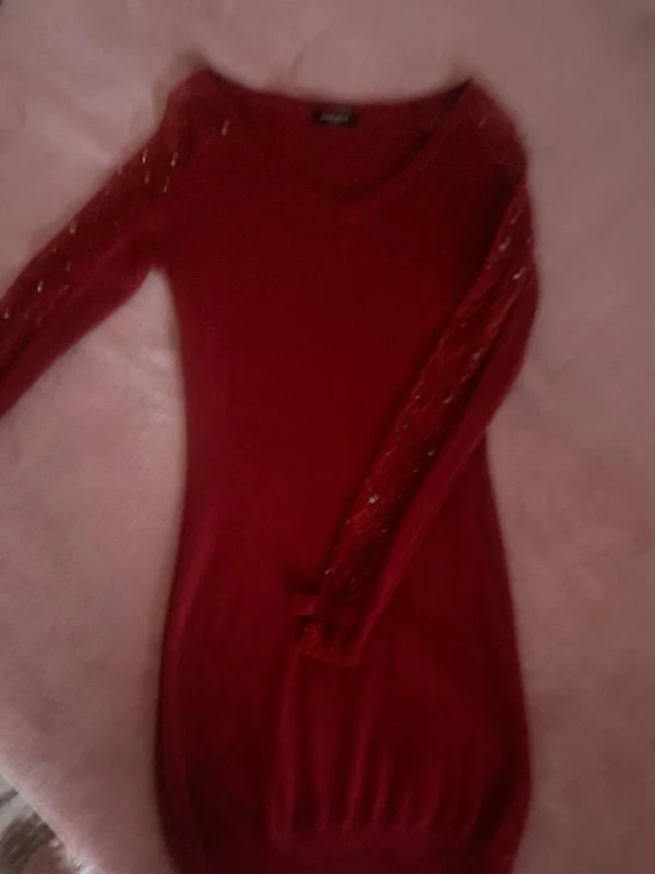 Тонкий удлиненный свитер с ажурными рукавами на размер S 5€