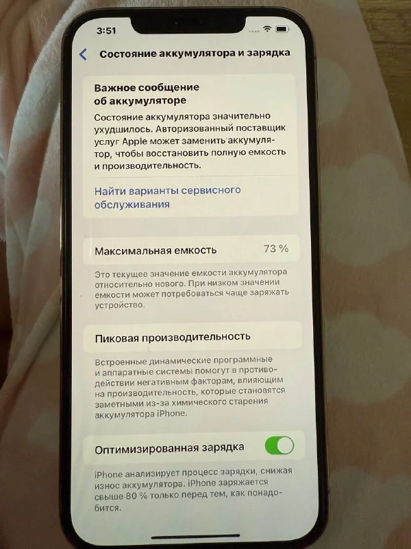 Емкость аккумулятора 73%