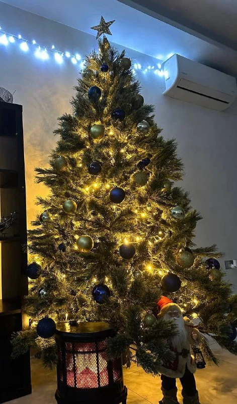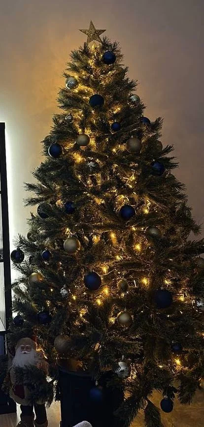 Продается Елка, 2.2м, 200евро(торг уместен) в подарок игрушки(синие и золотые),2 гирлянды (белая и желтая) и дед мороз