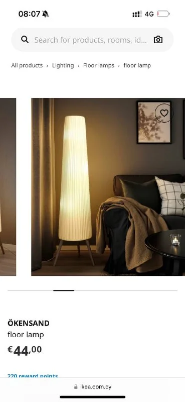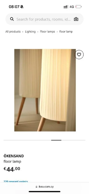 Напольная лампа на деревянных ножках с тканевым абажуром, IKEA 25€