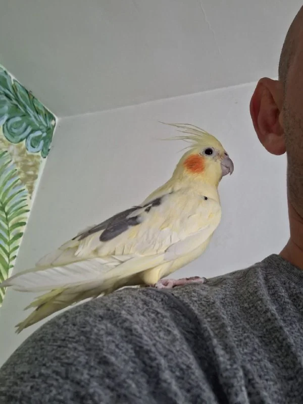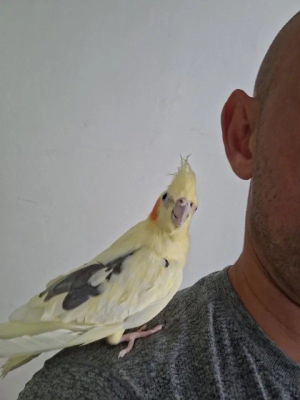 Отдам попугая по имени Рио в хорошие руки. С клеткой и кормом. Сидит на плече и на руках но может укусить если много гладить. Привыкшый к клетке, не сбежит если вылетает на улицу. Если накрыть то не чирикает.