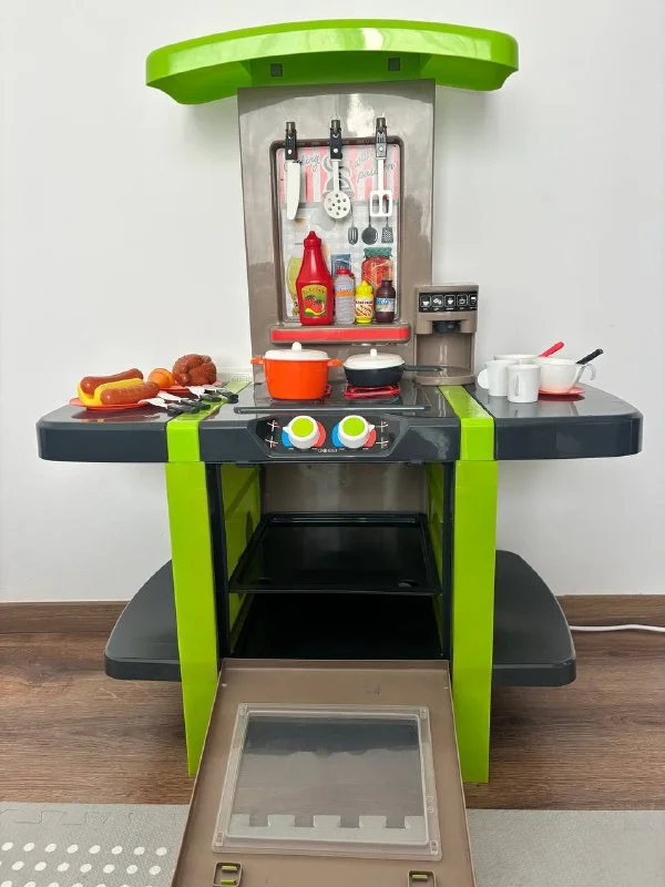 Детская кухня, в высоту около 100 см, в ширину - 77 см. С набором посуды. Покупали за 100 €, продаю за **50 €