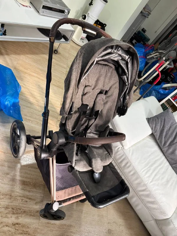 Коляска cybex- только сидячая- есть запасной серый капюшон и покрытие на сиденье, так же есть зонт. Сломана ручка для складывание- но складывается. Потёрта кожа на ручке.