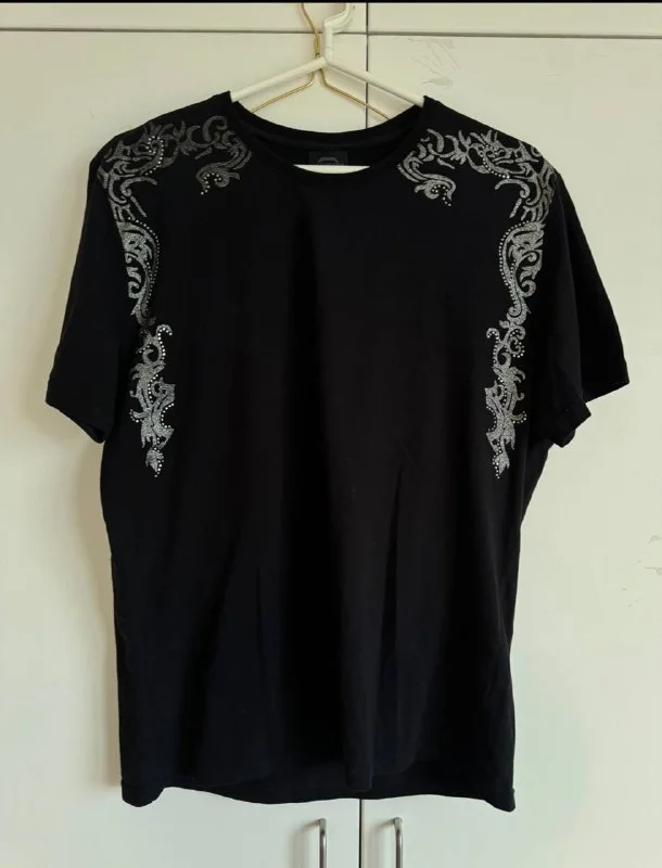 Черная футболка в стразах,L-5€