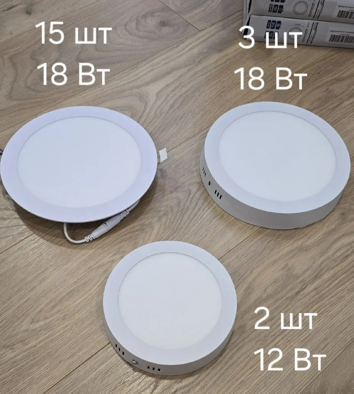 Продается набор потолочных светильников. Шли от застройщика, 2-3 месяца использовались, в очень хорошем состоянии, несколько по краям немного замазаны водоэмульсионной краской.
