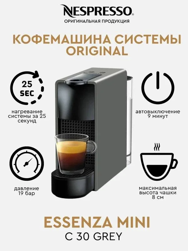 ➡️Nespresso Капсульная кофемашина кофеварка Nespresso Essenza Mini C30 Black, черный