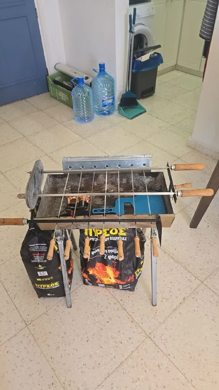 Полный набор с электроприводом,дополнительно батарейки,кочерга,угли