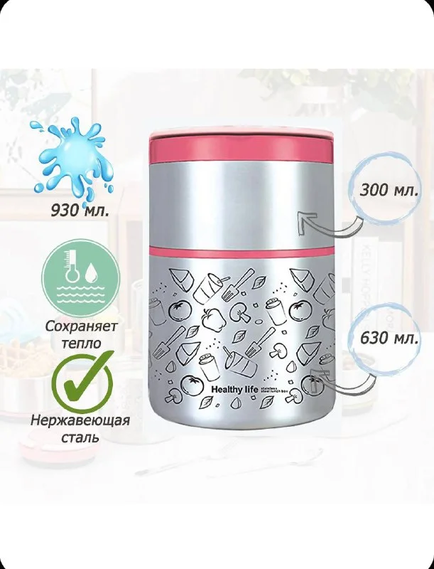Термос термо контейнер новый, двухуровневый. 630 мл и 300 мл. Общий обьем 930 мл. Нержавеющая сталь. 12 евро. Лимассол. Каника