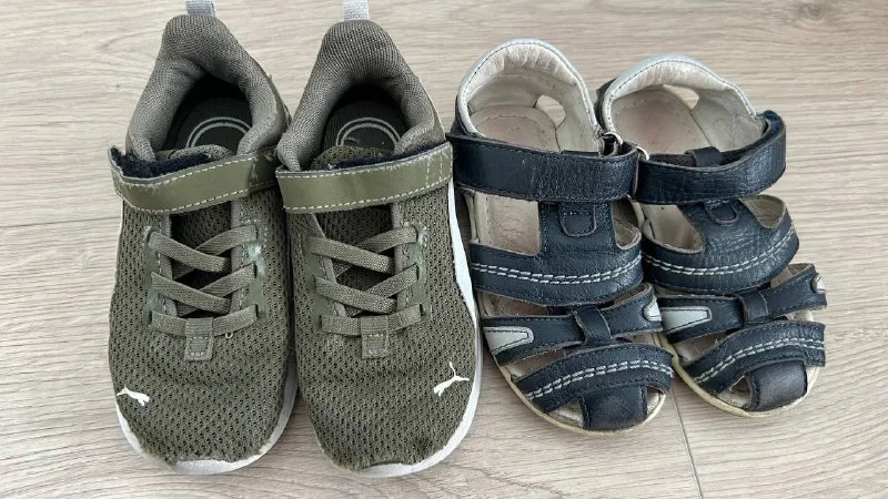 К ним отдам «доносить» кожаные сандали и кеды на последнем фото.