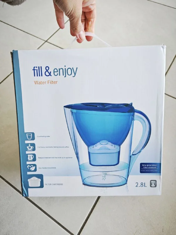 Кувшин с фильтром для воды на 2,8 литров. Абсолютно новый. Автоматический таймер на 60 дней, по истечении которого нужно снова менять фильтр, затем этот таймер можно сбросить. 20 евро.