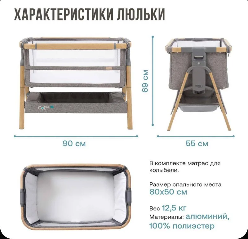С отстегивающимся бортиком для расположения рядом с кроватью. С сеточкой.