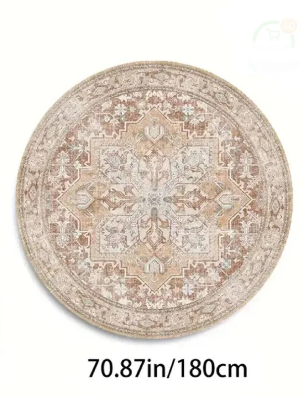 Круглый винтажный велюровый ковёр, D - 180 см. Новый в упаковке. На фото 3 его реальная расцветка. Очень легкий. Антисеользящее покрытие с изнаночной стороны. Можно стирать.