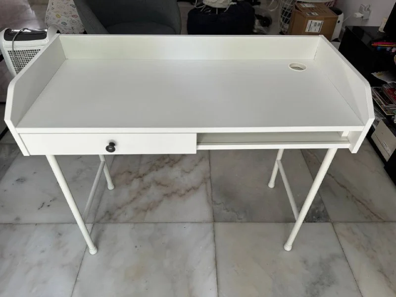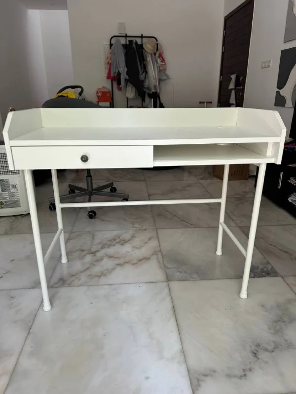 1. Письменный стол Икеа Hauga 100*84 см. Цена: 100€. Состояние отличное, пользовались мало.