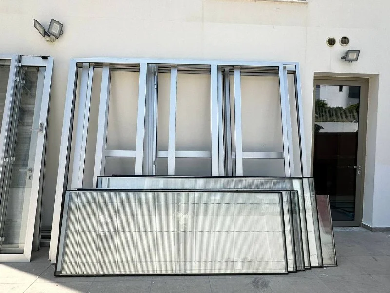 Продаются алюминиевые окна, двери и рамы с двойным остеклением, некоторые стекла со встроенными жалюзями. Высота 2,80м. В хорошем состоянии. Самовывоз. Лимассол. Стоимость за все 1300 евро.