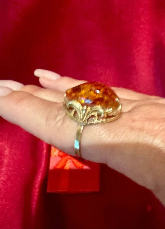 Кольцо 💍 золото 585 проба с натуральным большим камнем ЯНТАРЬ,размер приблизительно 18. Отдам за 690€