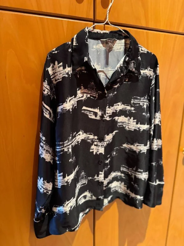Черная атласная рубашка Stradivarius ,L(надевалась один раз)-15€