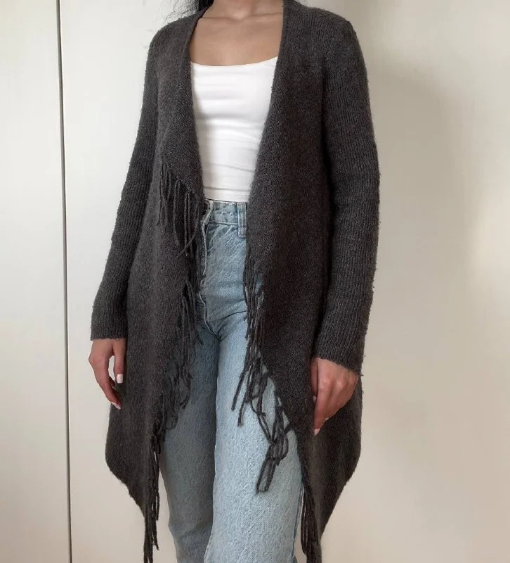Серый кардиган с рюшами(надевался несколько раз)S/M-10€
