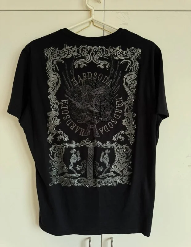 Черная футболка в стразах,L-5€