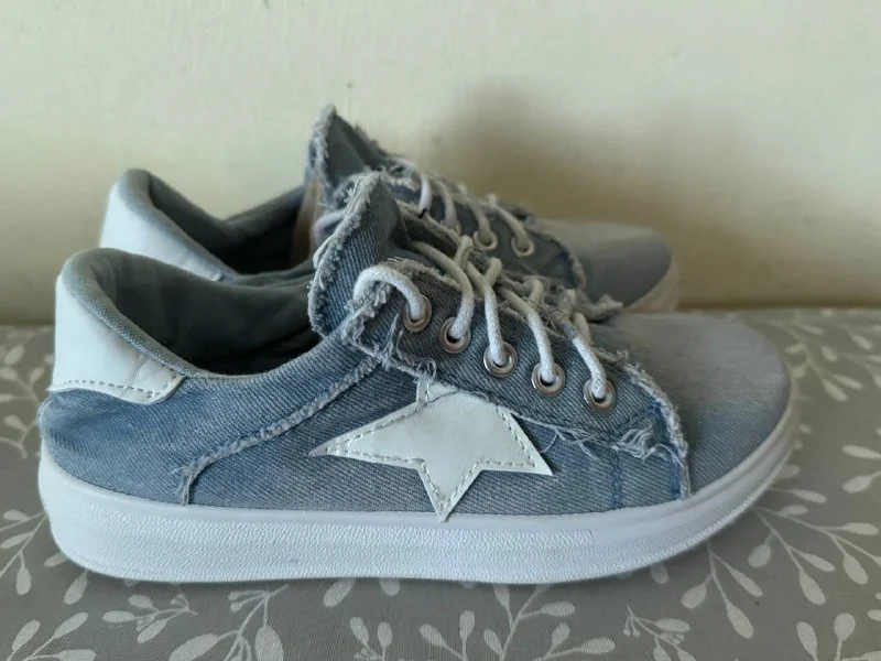 в идеальном состоянии, надела один раз. (от одной стирки немного потерты кончики шнурочков)