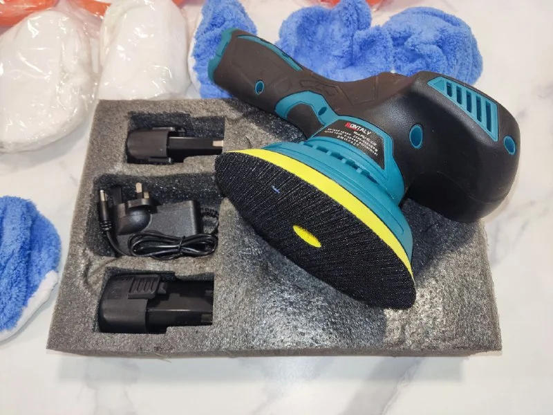 Новая в оригинальной коробке беспроводная wireless машина для ваксинга и полировки автомобилей c 18 насадками, 2-мя батареями и зарядкой. 8 скоростей, мощность 380W, Speed 2500 - 5000 r/min adjustable. Полностью переносной и независимый от стационарных розеток полировочный инструмент. Portable Car Waxing and Polishing Tool.