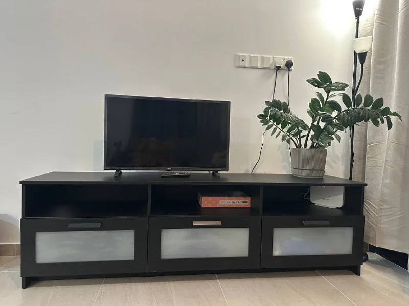 Тумба под телевизор IKEA Brimnes, на задней стенке есть отверстия для кабелей, размеры на фото.