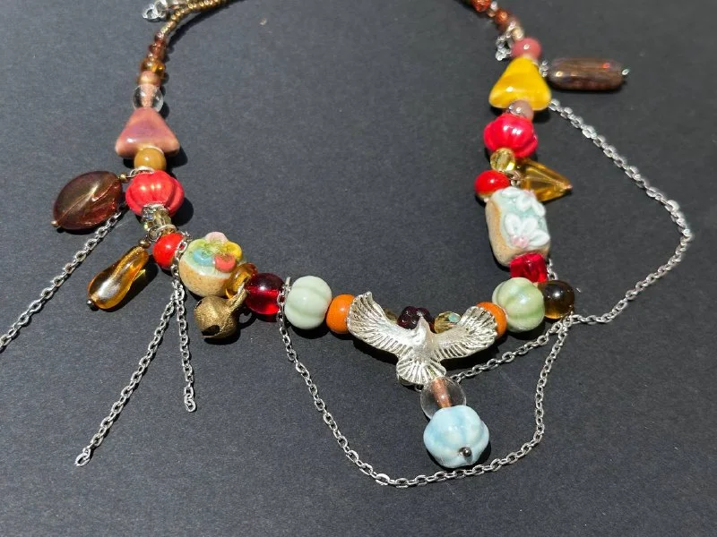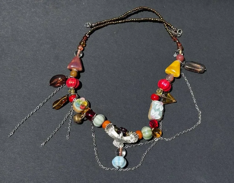 Украшение на шею, оригинальные бусины ручной работы. 40€, Лимассол ( с птичкой) Длинна 50см.