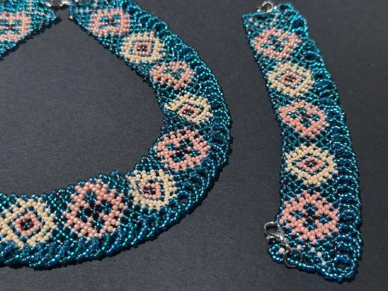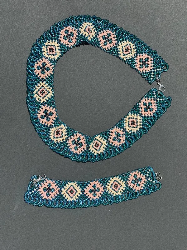 Чокер и браслет, бисер. Ручная работа. 60€, Лимассол. Длинна чокера 36см, немного тянется, можно добавить удлинитель в виде цепочки. Ширина 3см. Браслет длинна 18см.