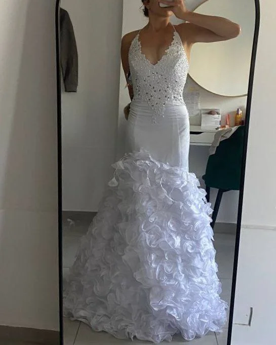 * Фасон: "Русалка". Элегантный облегающий силуэт с пышным многослойным подолом из воздушных оборок.
