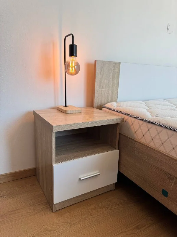 В комплект входит кроватный каркас + 2 прикроватные тумбочки, купленные в Suntower Plaza и оригинальный наматрасник.