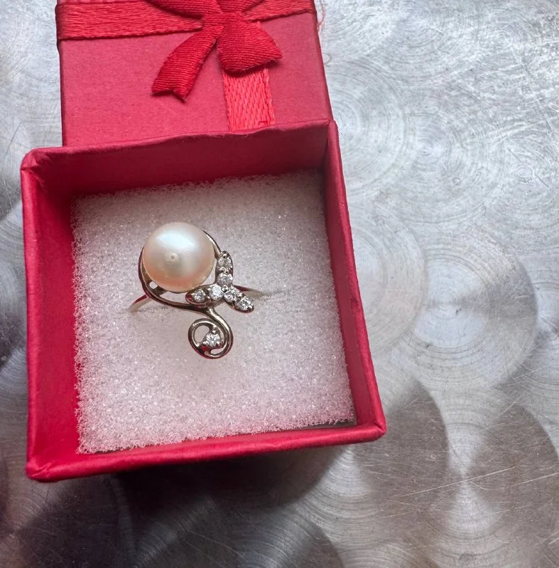 Колечко 💍 из белого золота с натуральным камнем жемчуг
