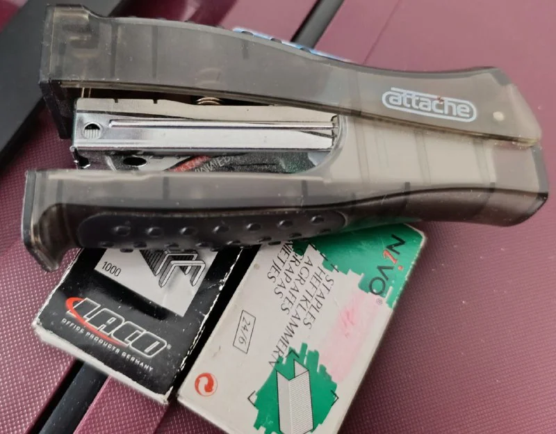 Степлер ATTACHE 8918 (№24/6&26/6) до 20 лист., вертикальный черный из полупрозрачного пластика с прорезиненными рельефными вставками. Рабочие компоненты изготовлены из высококачественной стали.