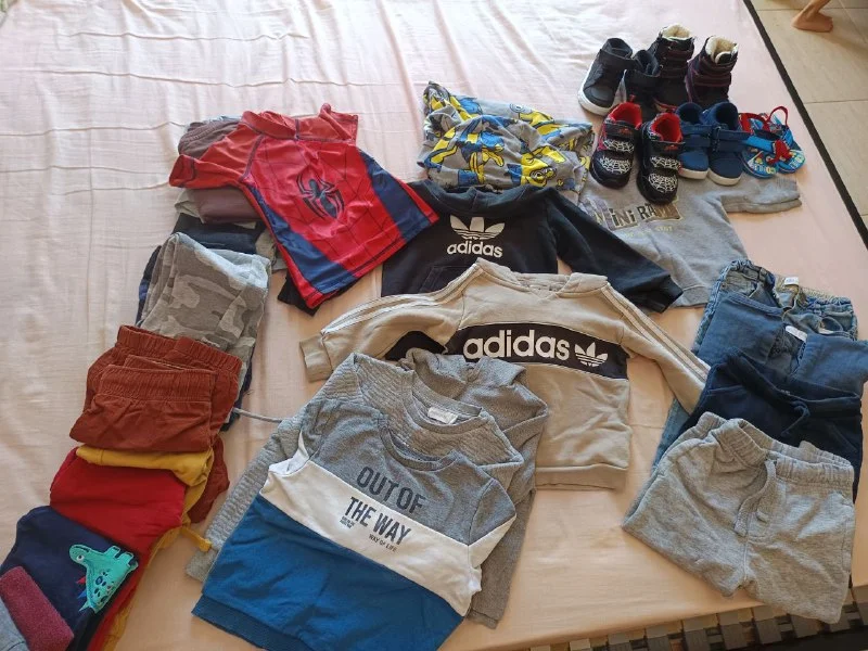 Все за 30 евро. Вещи на мальчика 1-2 года . Обувь 24 р. Две пары абсолютно новые. Человек паук кросовки были привезены из Англии, но мы забыли про них и ни разу не одевали. Zara, h&m и другие . Все чистенько в хорошем состоянии!